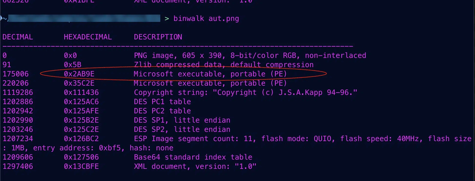 พร้อมกับไฟล์รูปภาพสกุล .PNG ที่ดูเหมือนไม่มีพิษมีภัย 2 ไฟล์ออกมา แต่แท้ที่จริงแล้วในไฟล์รูปภาพเหล่านั้นกลับซ่อนโค้ดอันตรายสำหรับการทำงานร่วมกับมัลแวร์นกต่อตามที่กล่าวไว้ข้างต้น