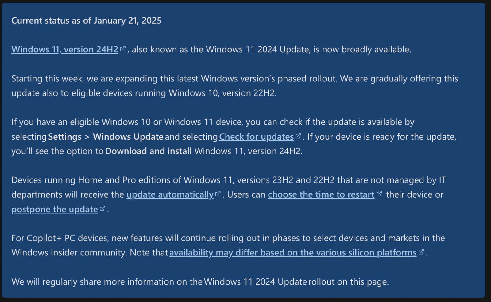 ภาพจาก : https://learn.microsoft.com/en-us/windows/release-health/status-windows-11-24h2