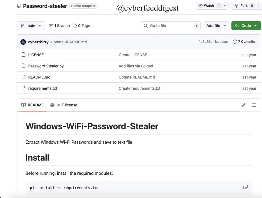 ภาพจาก : https://cybersecuritynews.com/windows-wi-fi-password-stealer-github/