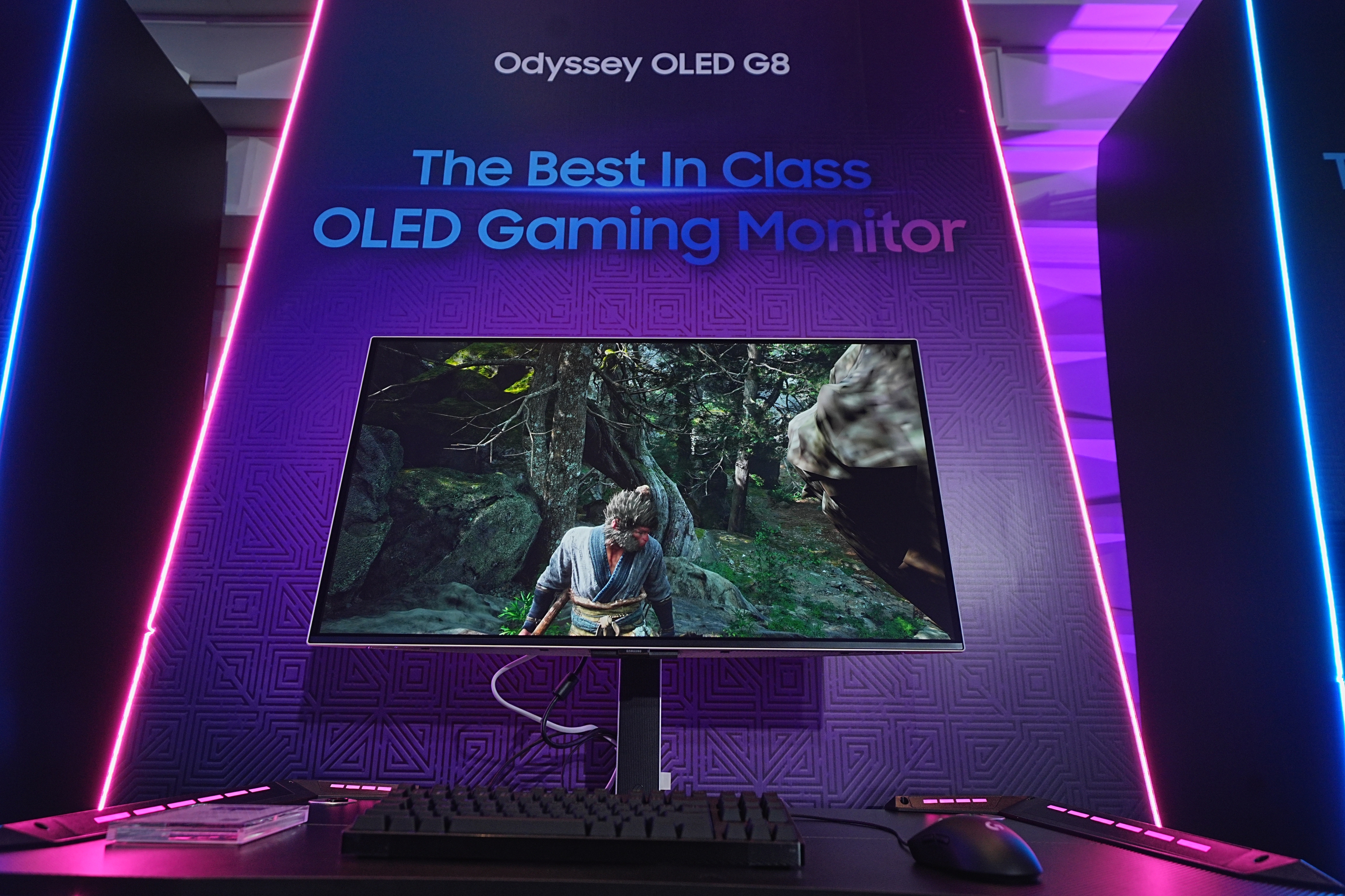 อีกหนึ่งจอเกมมิ่งไฮไลต์ต้องยกให้ Odyssey OLED G81SF ที่มีจอ QD-OLED ความละเอียดสูงระดับ 4K พร้อมความหนาแน่นพิกเซลสูงที่สุดในวงการจอเกมมิ่งถึง 166 PPI มอบความคมชัดสุดสมจริงยิ่งกว่าที่เคย เสริมประสิทธิภาพด้วยเทคโนโลยี Glare Free ลดแสงสะท้อนจากภายนอกลงถึง 54% ทำให้ใช้งานได้สบายตาในทุกสภาพแสง และยังมี VESA DisplayHDR TrueBlack 400 ให้ความคอนทราสต์สูง มอบสีดำลึก นอกจากนี้สำหรับสายเกมเมอร์ที่ใช้งานเป็นเวลานานยังมีระบบ Samsung OLED Safeguard+ ที่มีท่อระบายความร้อน Pulsating Heat Pipe และระบบควบคุมความสว่างอัตโนมัติ เพื่อลดความร้อนจากการใช้งาน รวมถึงฟีเจอร์ป้องกันเบิร์นอิน เช่น การตรวจจับโลโก้และทาสก์บาร์ที่เป็นภาพนิ่งเพื่อลดความสว่างเฉพาะจุด ที่สำคัญยังบอดี้ยังดีไซน์จากโลหะบางเบาสุดพรีเมียมและขาตั้งตามหลักสรีรศาสตร์