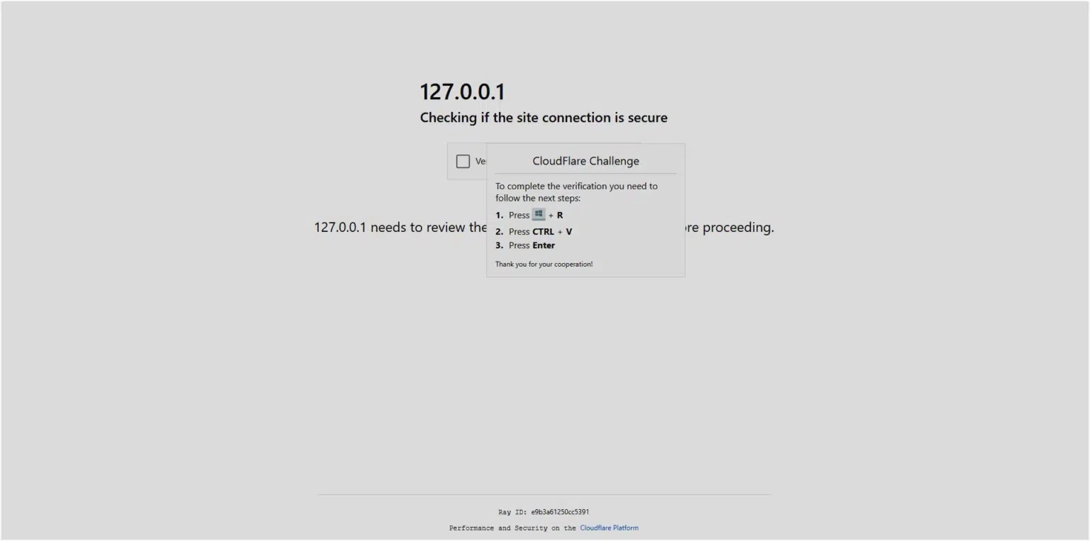 แต่สิ่งที่ต่างออกไปคือ เมื่อเหยื่อทำการกดติ๊กที่กล่อง Check Box แทนที่จะสามารถเข้าเว็บไซต์ได้เลยแบบหน้าจอของจริง กลับมาการรัน JavaScript เพื่อสั่งการในการรันสคริปท์ที่ซ่อนอยู่ขึ้นมาอีกที พร้อมข้อความคำสั่งต่าง ๆ ที่สั่งให้เหยื่อทำตามเพื่อให้ผ่านระบบทดสอบที่อ้างว่าเป็น “Cloudflare Challenge” ขณะเดียวกันตัวสคริปท์ก็จะทำการทำการคัดลอก “สคริปท์สำหรับดาวน์โหลดและติดตั้งมัลแวร์ในรูปแบบสคริปท์ PowerShell” ไว้ในส่วนของ Clipboard