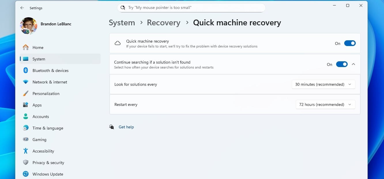 ภาพจาก: https://www.bleepingcomputer.com/news/microsoft/microsoft-adds-quick-machine-recovery-to-windows-11-settings/