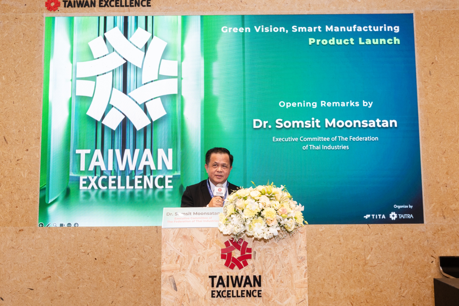 ดร.สมสิทธิ์ มูลสถาน กรรมการบริหาร สภาอุตสาหกรรมแห่งประเทศไทย ได้พูดถึง ยุคต่อไปของอุตสาหกรรม กับคอนเซ็ปต์ Green Vision, Smart Manufacturing ของ Taiwan Excellence ส่งผลดีต่อผู้ประกอบการ และเป็นจุดเริ่มต้นในการปรับตัวในการเปลี่ยนแปลงที่เกิดขึ้นอย่างรวดเร็วในอุตสาหกรรมของประเทศไทย กับอุตสาหกรรมระบบอัตโนมัติ และ AI เช่น Robot Arm, IoT รวมไปถึงการลดการปล่อยก๊าซเรือนกระจก จะทำให้เป็นศูนย์ Net Zero Emission ต้องทำให้ได้ทั่วโลก พร้อมจะสร้างคุณค่าใหม่ให้กับสิ่งแวดล้อม และเศรษฐกิจของประเทศไทยไปด้วยกัน