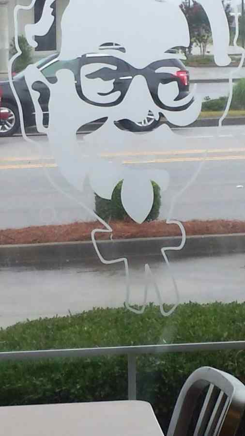 เมื่อมองรูปผู้พันแซนเดอร์สของ KFC เหมือน หากลองสังเกตข้างล่างดีๆ จะเห็นเหมือนเด็กที่มีหัวโตๆ เลยนะ