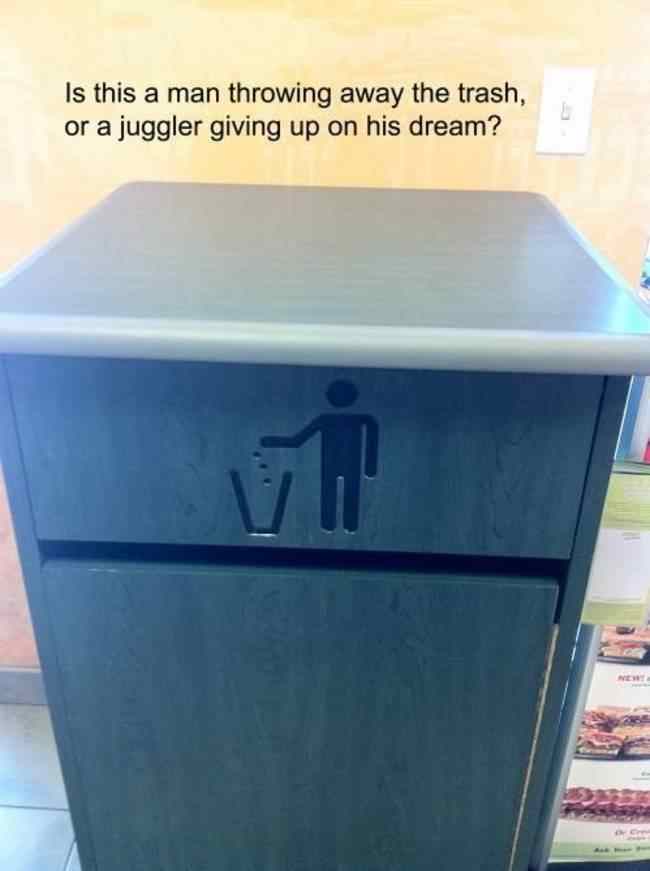 รูปคนทิ้งขยะ หากมองอีกมุมนึงก็เหมือนนักมายากลที่กำลังเล่นกลอยู่ด้วยนะ