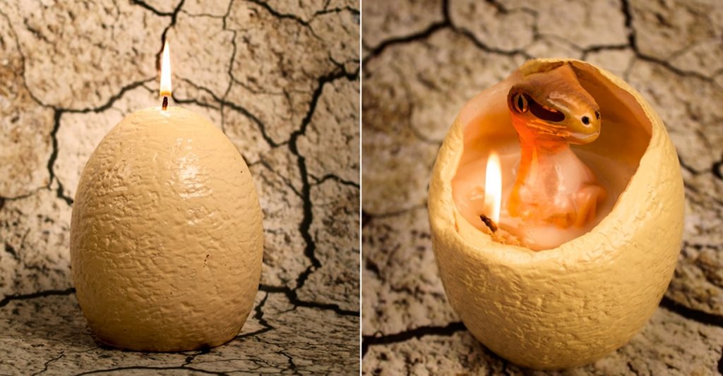 Smittyวันนี้จะพาเพื่อนๆ มาดู เทียนเก๋ๆ เท่ห์ๆ ไม่เหมือนใคร ที่ออกแบบมาสำหรับแฟนๆ Jurassic Park โดยเฉพาะ กับ เทียนไข่ไดโนเสาร์ ของชิ้นนี้หากดูภายนอกจะเหมือนกับไข่พลาสติกธรรมดาๆ มีขนาดไม่เล็กและก็ไม่ใหญ่มาก ประมาณครึ่งฟุต (ความกว้าง 14 ซม. ความสูง 14 ซม. และความหนา 16 ซม.โดยประมาณ) แต่เมื่อจุดไฟที่ไส้เทียนบริเวณด้านบนของไข่ ความร้อนจะค่อยๆ หลอมละลายเปลือกภายนอกของไข่ออกไป แล้วปรากฏเป็นไดโนเสาร์สายพันธุ์แร็พเตอร์ตัวน้อยอยู่ภายในไข่ได้อย่างสมจริงและน่าทึ่งมาก