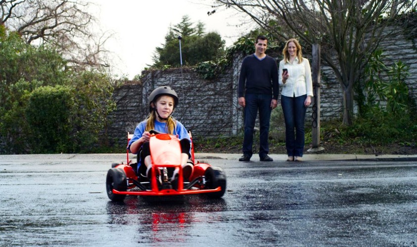 โกคาร์ทคันนี้ต้องบอกเลยว่าไม่ธรรมดา สามารถควบคุมการทำงานผ่านสมาร์ทโฟน ไม่ว่าจะเป็นการกำหนดขอบเขตที่รถสามารถวิ่งได้ลงบนแผนที่ (Geo-fence) เพื่อให้พ่อแม่อุ่นใจได้ว่าลูกๆ จะไม่ขับรถเล่นไปไกลจนไกลหูไกลตา หรือขับรถออกถนนใหญ่จนเสี่ยงที่จะถูกรถชน นอกจากนี้ยังสามารถกำหนดความเร็วสูงสุดของรถได้ด้วย โดยรถคันนี้ทำความเร็วสูงสุดได้ 12 ไมล์ต่อชั่วโมง (19 กม. ต่อชั่วโมง ก็เป็นความเร็วที่สนุกแล้วสำหรับเด็กๆ) และยังมีอุปกรณ์เสริมสำหรับสไตล์การขับแบบดริฟท์ แถมที่เบาะยังมีลำโพงที่จำลองเสียงของเครื่องยนต์ V-12 ของรถ Ferrari ในอนาคตจะมีเสียงเครื่องยนต์ของรถแบบอื่นๆ ให้เลือกได้ด้วย